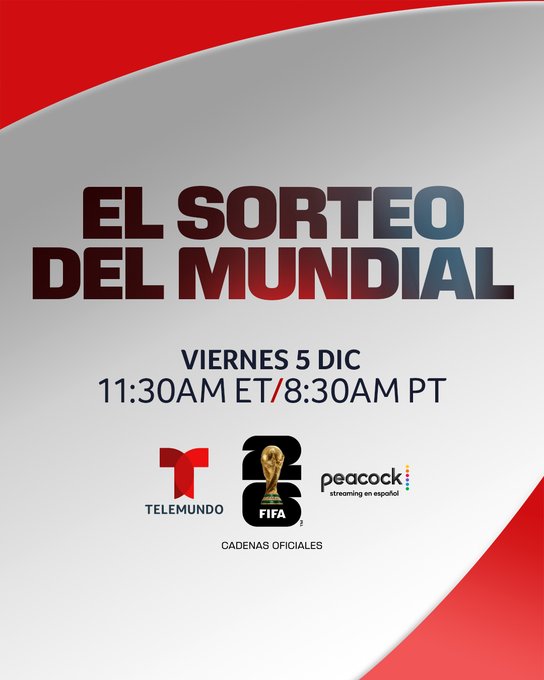 En paralelo al espacio digital, Telemundo presentará el Sorteo Final en vivo de 12 p.m. a 2 p.m. ET por Telemundo, Universo y Peacock. El equipo de transmisión y análisis incluye a Andrés Cantor, Luis Omar Tapia, Miguel Gurwitz, Carlota Vizmanos, Copán Álvarez, Adriana Monsalve, Diego Balado y José Luis López Salido, con la participación de los exfutbolistas Maxi Rodríguez y Diego Lugano. La señal contará con análisis, entrevistas y programación adicional desde estudios y sedes especiales en Washington, D.C.
